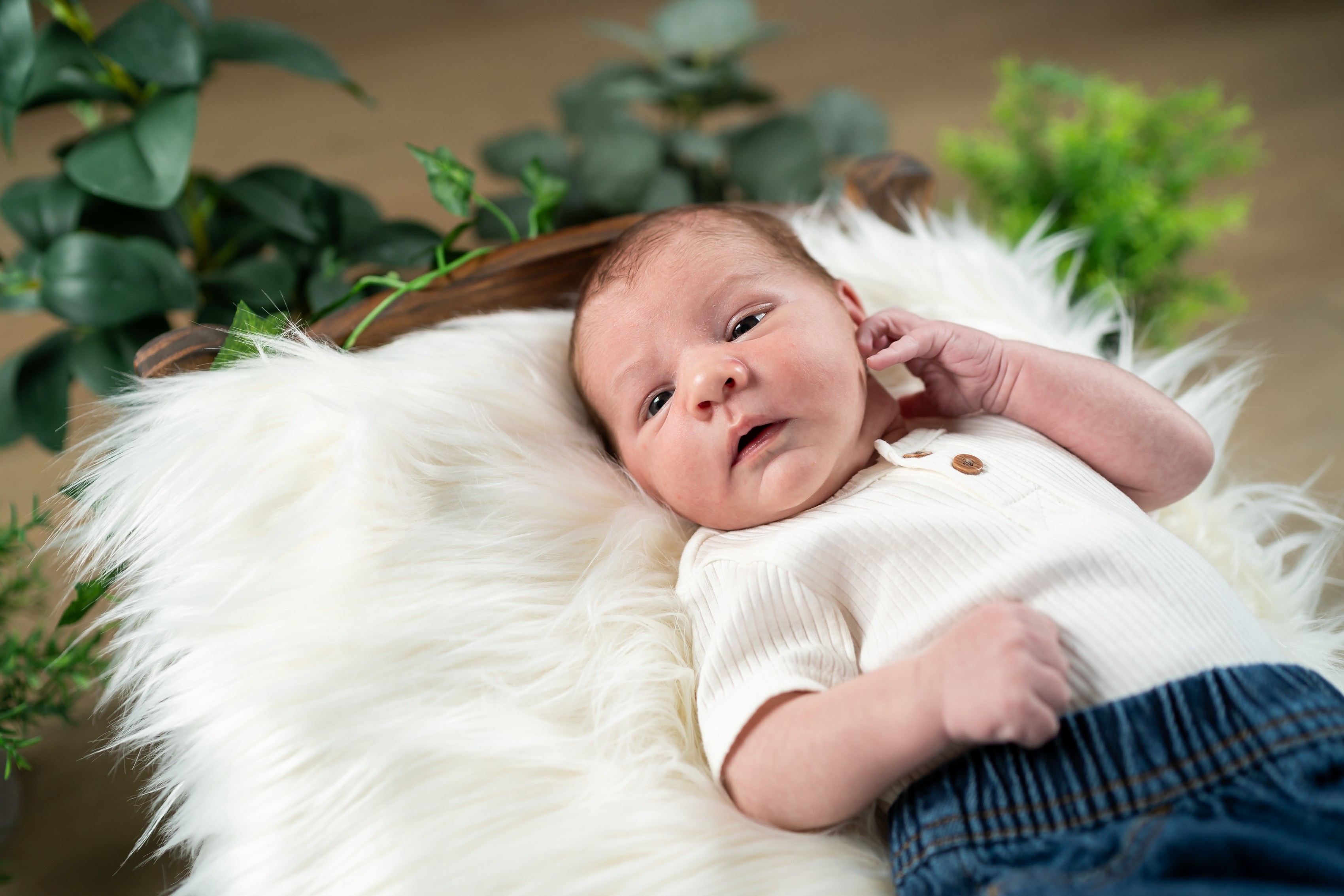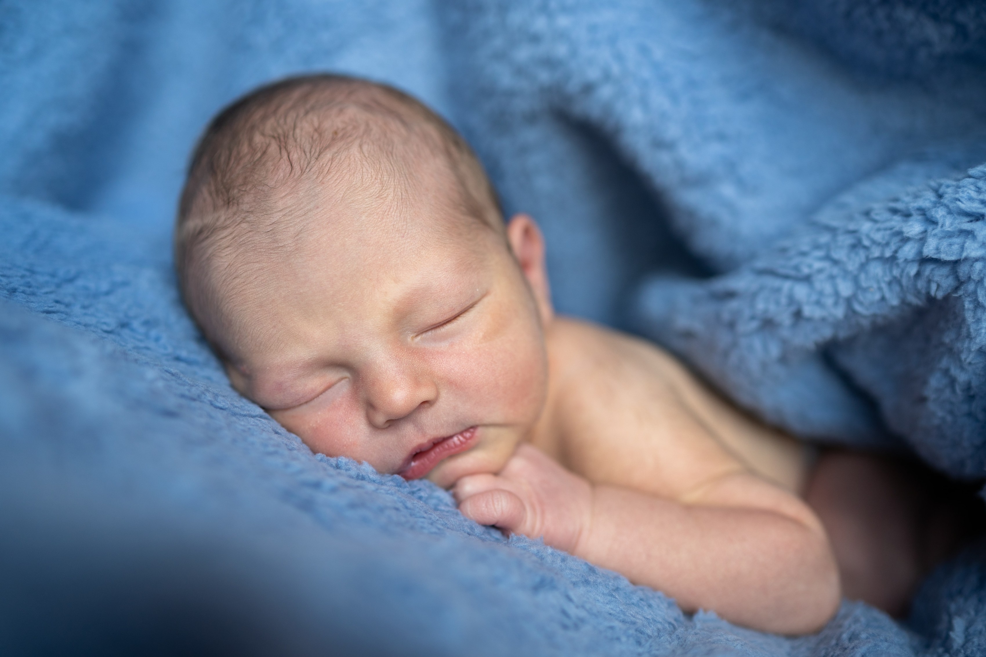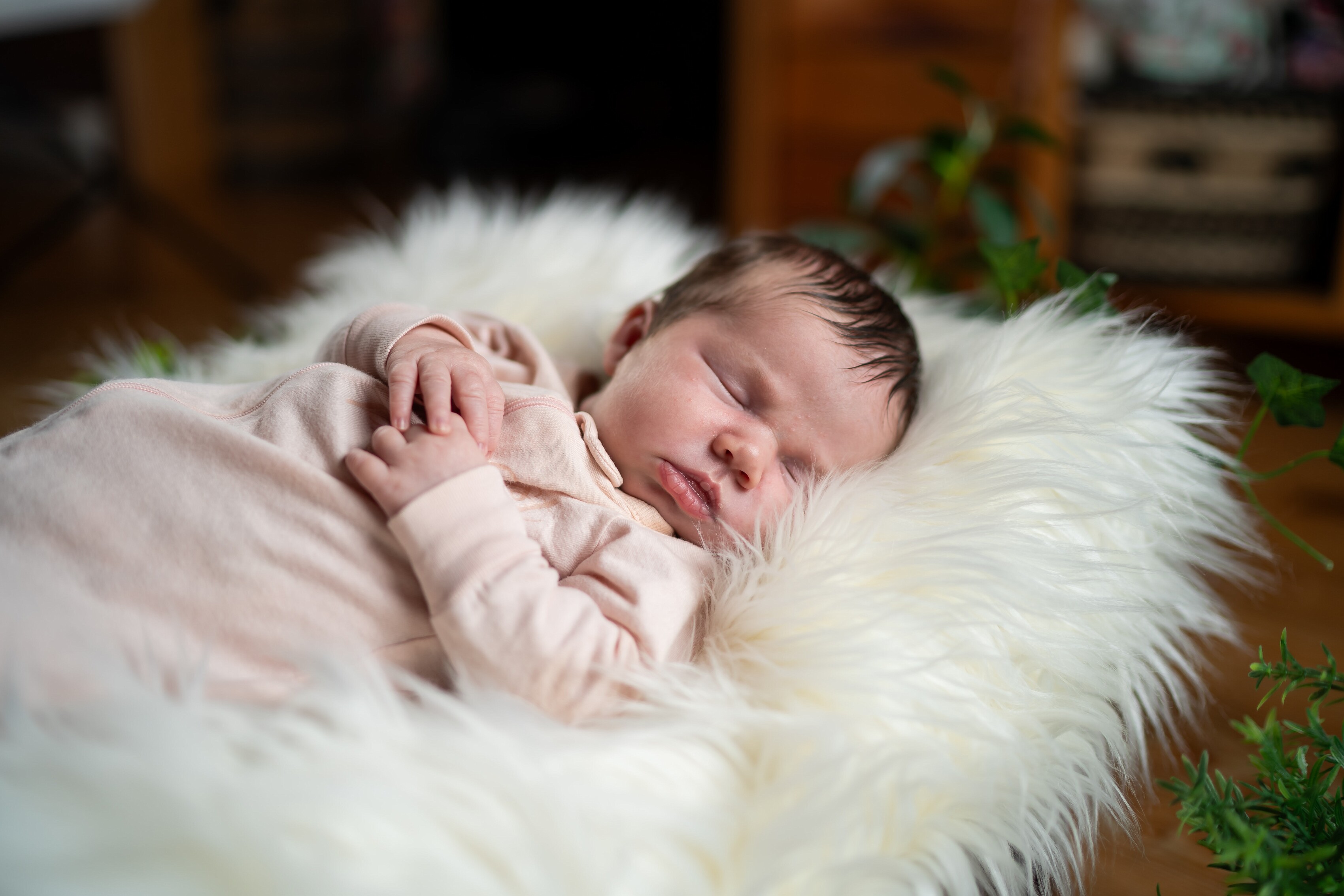 Babies are most relaxed in their own environment. Staying home keeps them calm, making it much easier to capture those sleepy, curled-up poses.