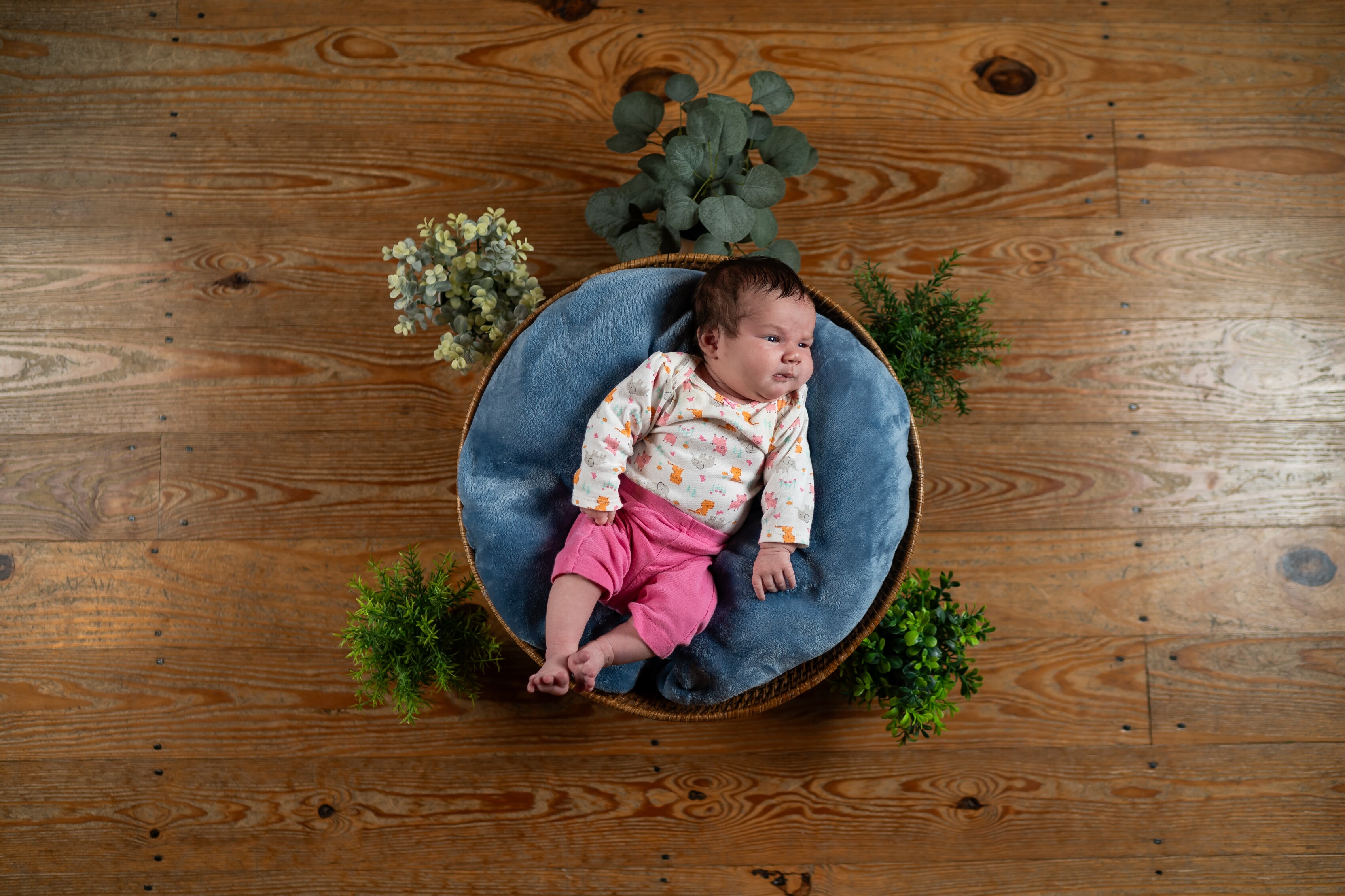 We arrive with all necessary studio lighting and props. We set up quietly and work around feeding and changing breaks—we never rush the baby.