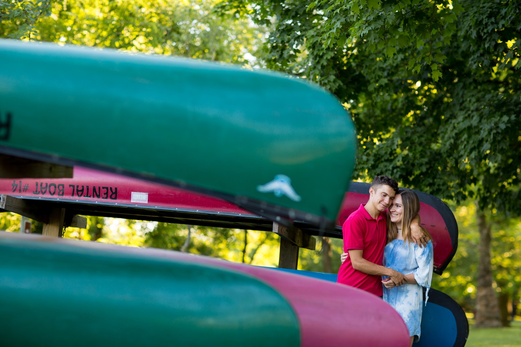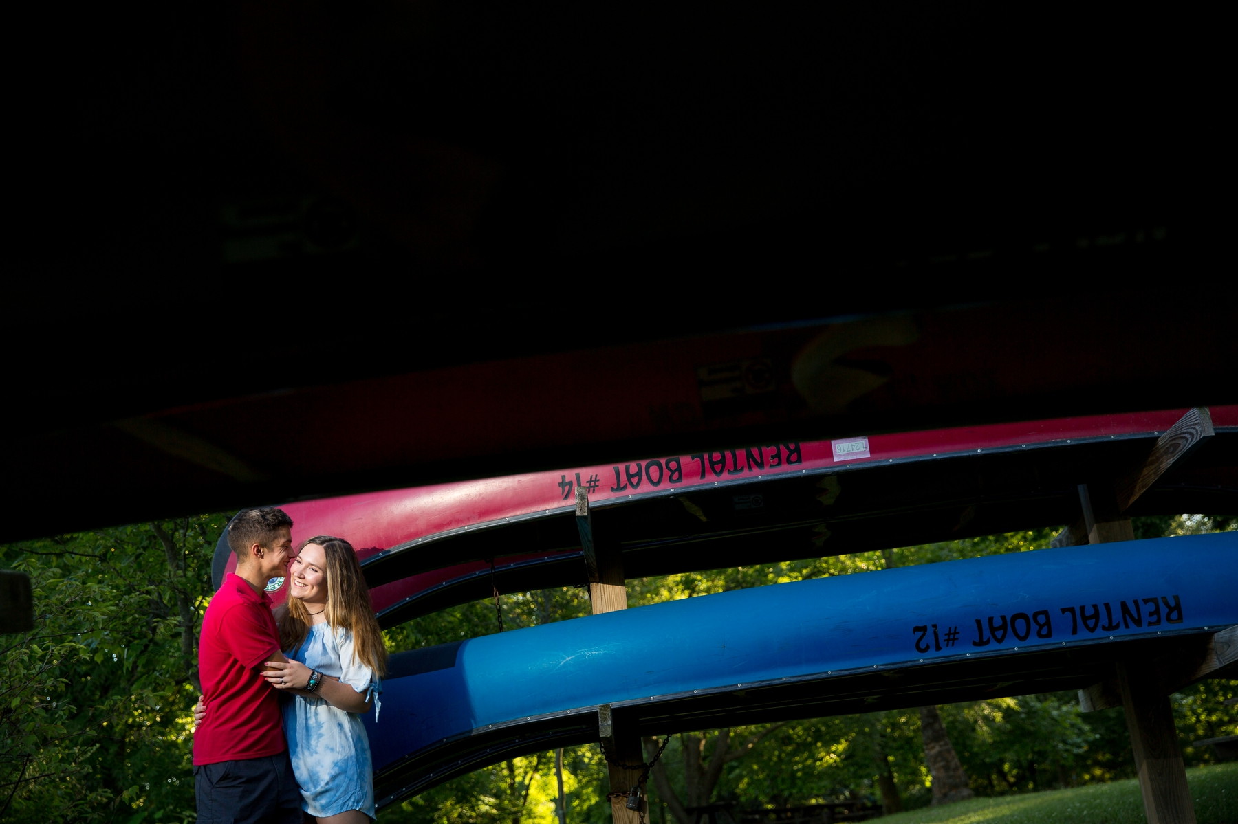 Memorial Lake is a hidden gem for couples who want a mix of woods and water. Watching these two navigate the lake in a canoe was a highlight - it gave us the chance to capture genuine interaction as they worked together to find the best views. The stillness of the lake provided a perfect, reflective backdrop for their portraits.